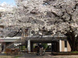 お花見喫茶店 2026年04月02日 イベント 4月29日、良く晴れた日曜日にご入居者様とお花見をしました。 ホールには喫茶店が開店し、会場で焼いた焼きたてのどら焼きの皮に こしあん・桜あん・カスタードクリームの中からお好きな物を選んでその場で挟んで召し上がっていただきました。 職員も一緒にお相伴に預かりましたが、生地が焼ける甘ーい香りも相まってとっても美味しかったです。
