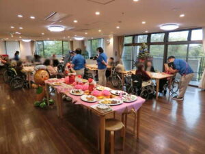 クリスマス会 2025年12月21日 イベント 12月21日(日)一足早いクリスマス会が開催されていました。 クリスマスソングが流れる中、ご参加くださったご入居者の皆さまは、チョコレートやケーキなどバイキング形式に用意されたスイーツをご自分で選んで美味しそうに召し上がられていました。