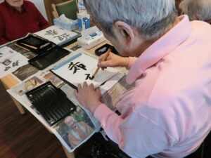 書初め 2026年01月03日 イベント お正月のレクリエーションは、各フロアで書初めやすごろくなどお正月らしいレクリエーションを行いました。 しっかりとした文字で「希望」「迎春」など書いていらっしゃいました。
