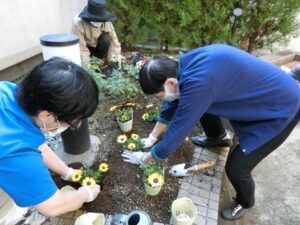 花の苗の植え付け 2026年03月16日 イベント 2階と5階のお庭のお花を、ご入居者、ケアスタッフ、以前受付いた職員にもご参加いただき一緒に植え替えをしました。 今回のお花は、ビオラ・オステオスペルマム・マーガレット・クリスマスローズ・ネメシア・ヘリオトロープを植えました。花壇が可愛いお花でいっぱいになりました。